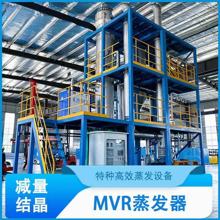根据物料特性,硫酸钠系统选用MVR降膜蒸发浓缩方式浓缩料液,当物料接近硫酸钠饱和时,进入硫酸钠强制循环结晶器,生产硫酸钠。硫酸钠结晶器热源由一台MVR蒸汽压缩机提供;蒸发结晶后的硫酸钠母液进入冷冻系统进行冷冻,析出芒硝后,上清液进入混盐系统进行蒸发结晶,芒硝分离溶解后进入硫酸钠结晶器结晶。混盐系统的母液进入杂盐干燥机进行干燥,最终实现液体零排放。