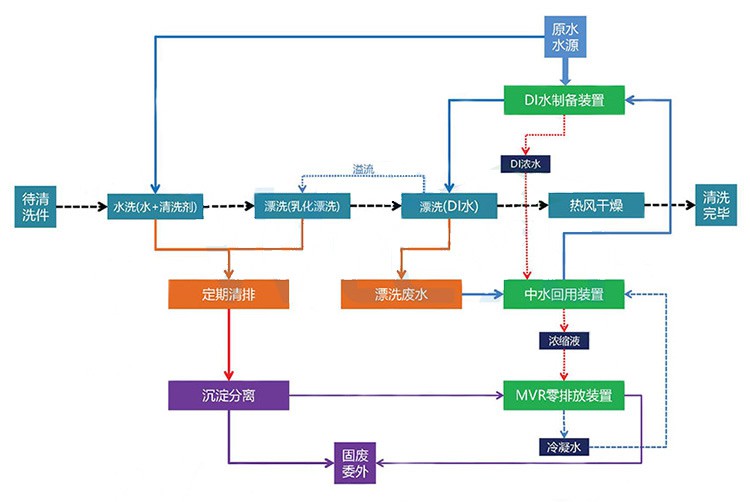 线路板PCBA清洗废水回用和零排放简易流程图: