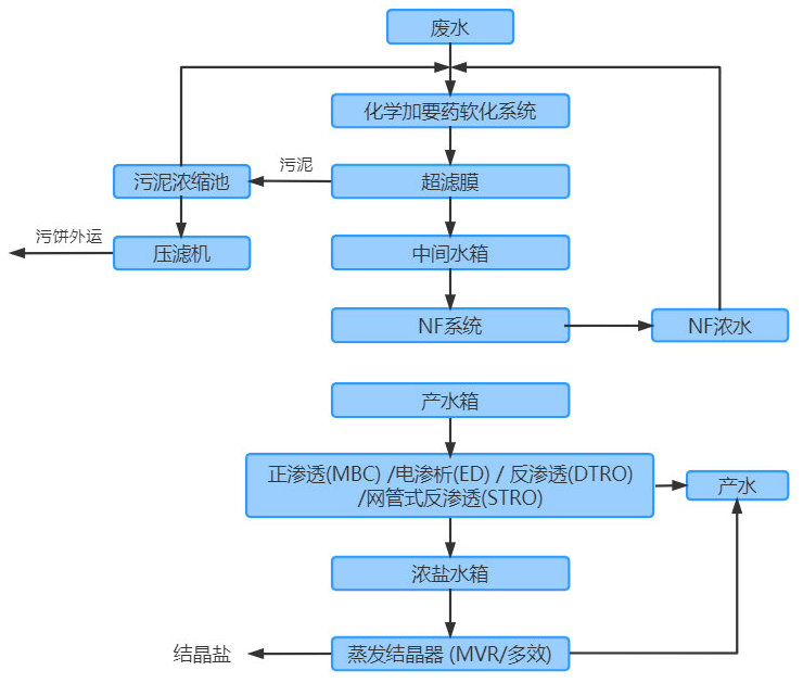 废水零排放处理设备系统主要分为如下三种工艺流程: