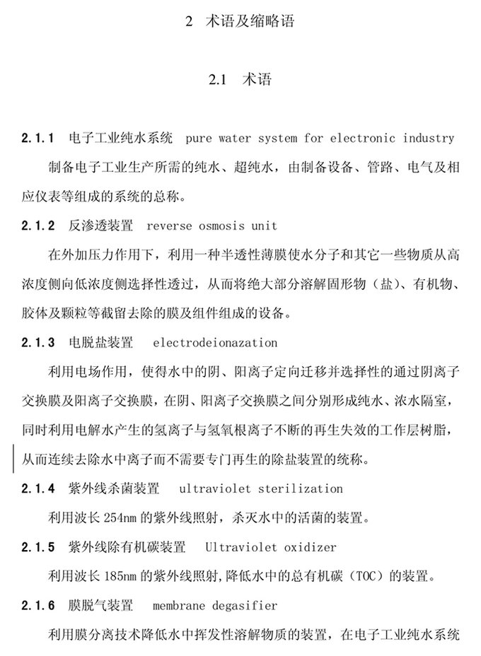 《电子工业纯水系统安装与验收规范》为国家标准,编号为GB51035-2014,自2015年8月1日起实施。