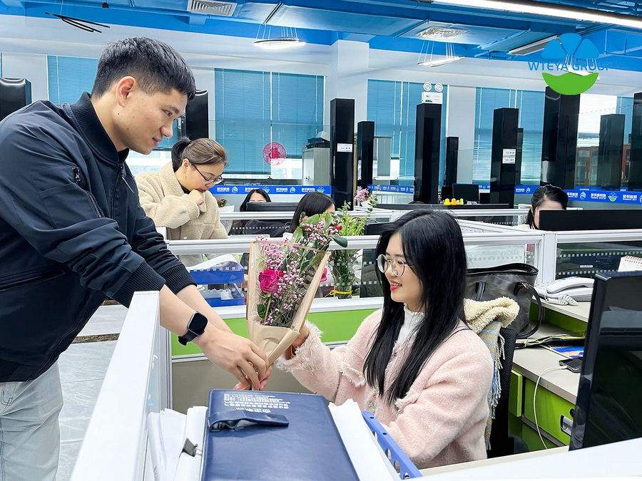 今天的威特雅办公室,空气中弥漫着淡淡的花香。男同事们纷纷手上捧着一束束精美的鲜花,为公司的女神们送上专属的浪漫与仪式感。这承载着满满的祝福与敬意,女神们脸上洋溢着幸福的笑容。